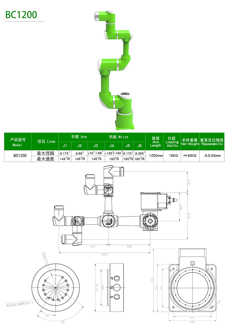 BC協作型系列六軸機械手 BC1200