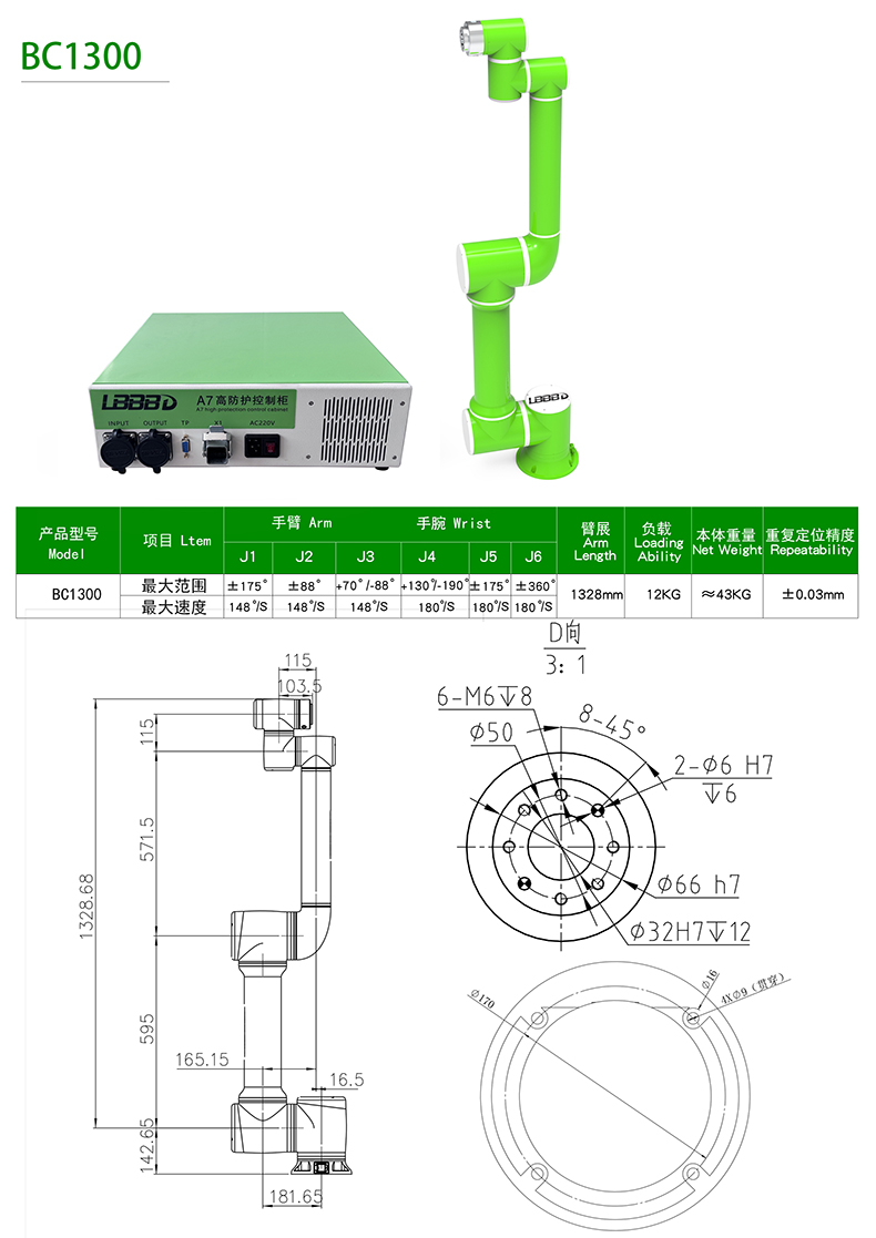 BC協(xié)作型系列六軸機(jī)械手 BC1300